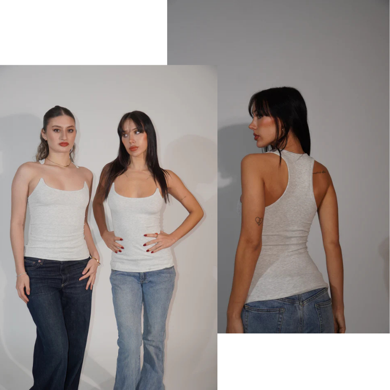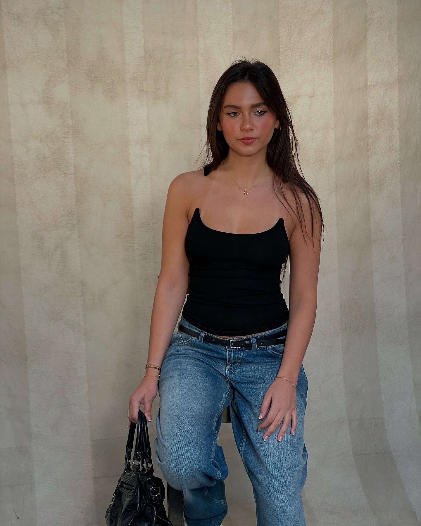 Askıları görünmeyen bu tank top, sadeliğin en büyüleyici hali. Vücudunu zarifçe sarar, bakışları üzerinde toplarken konforundan ödün vermez.